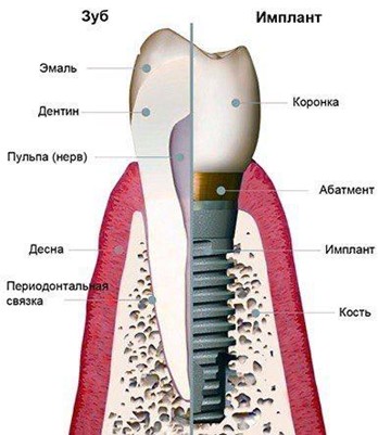 Это процесс, при котором в челюстную кость вживляют искуственный корень(имплант) вместо потерянного зуба.